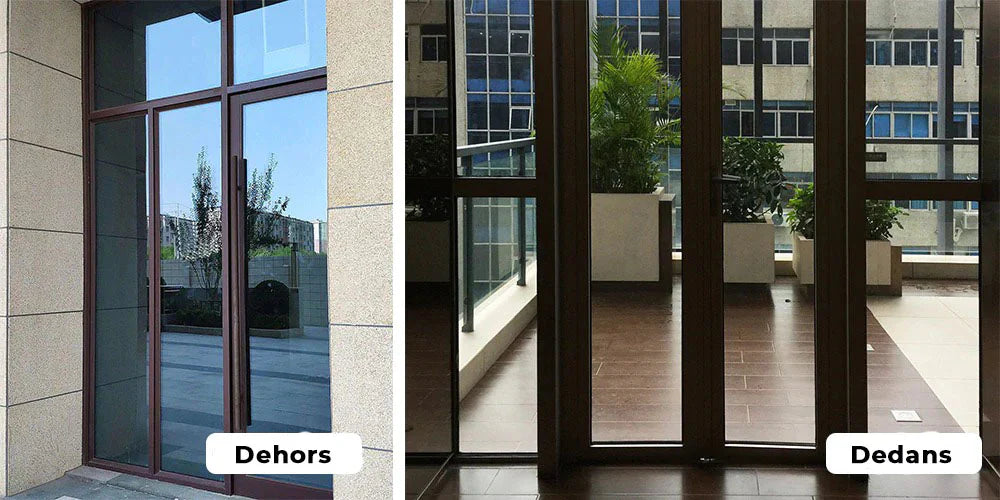 Même s'il protège du vis-à-vis, le film miroir sans tain laisse passer une grande partie de la lumière et réduit de seulement 10 à 12% la lumière.