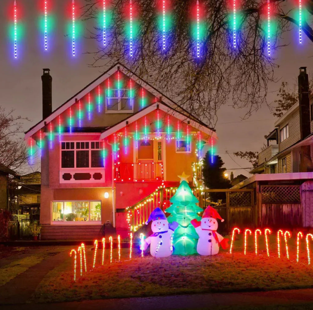 Allumez la guirlande et profitez d'un magnifique spectacle de chute de neige. Les lumières glissent le long de chaque tube offrant une impression de cascade.