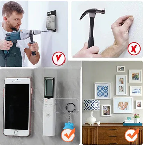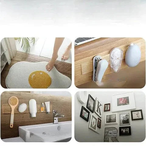 Facile à installer, aucun outil requis ! Ils adhèrent solidement à tous vos objets et sur toutes les surfaces, remplaçant ainsi le besoin de percer dans les murs avec des vis. Ils peuvent supporter jusqu'à 1,2kg sur une surface lisse !