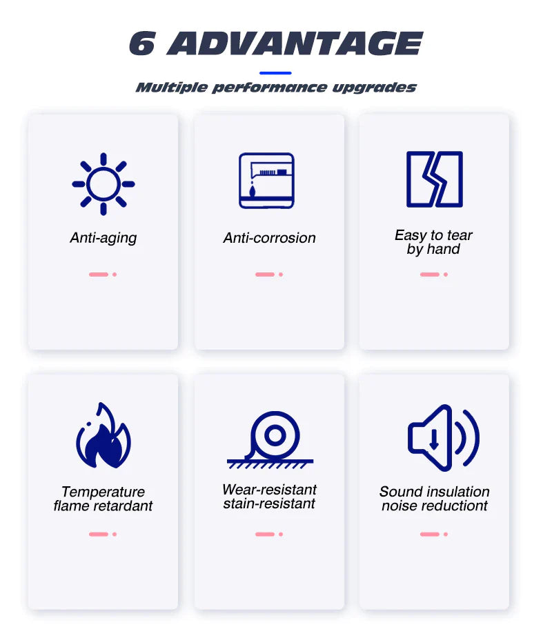 A une résistance collante et solide, résistante à la corrosion, à l'usure, aux hautes températures, etc. Performance: étanche, anti-âge, absorption des chocs, haute température, anti-température à la fin, pour réduire le bruit, étanche.