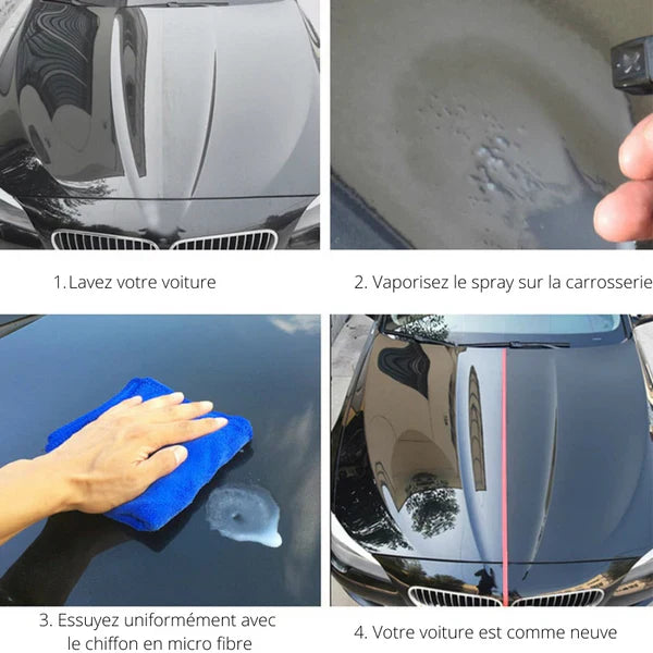 Le spray dépose une fine couche de protection semi permanente sur votre voiture afin de l'a protéger, notamment votre carrosserie des contraintes extérieurs, comme le froid, la chaleur, les produits chimiques, la pluie ou encore la grêle.