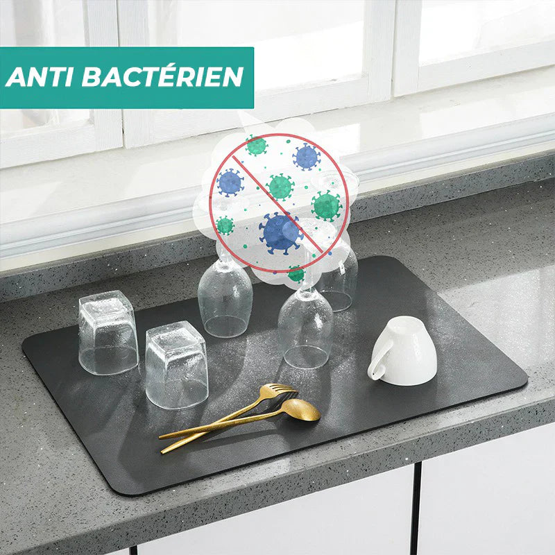 Le tapis de séchage rapide possède également une surface antidérapante, idéale pour éviter que la vaisselle glisse. Il peut également être utilisé pour les gamelles de vos animaux de compagnie.